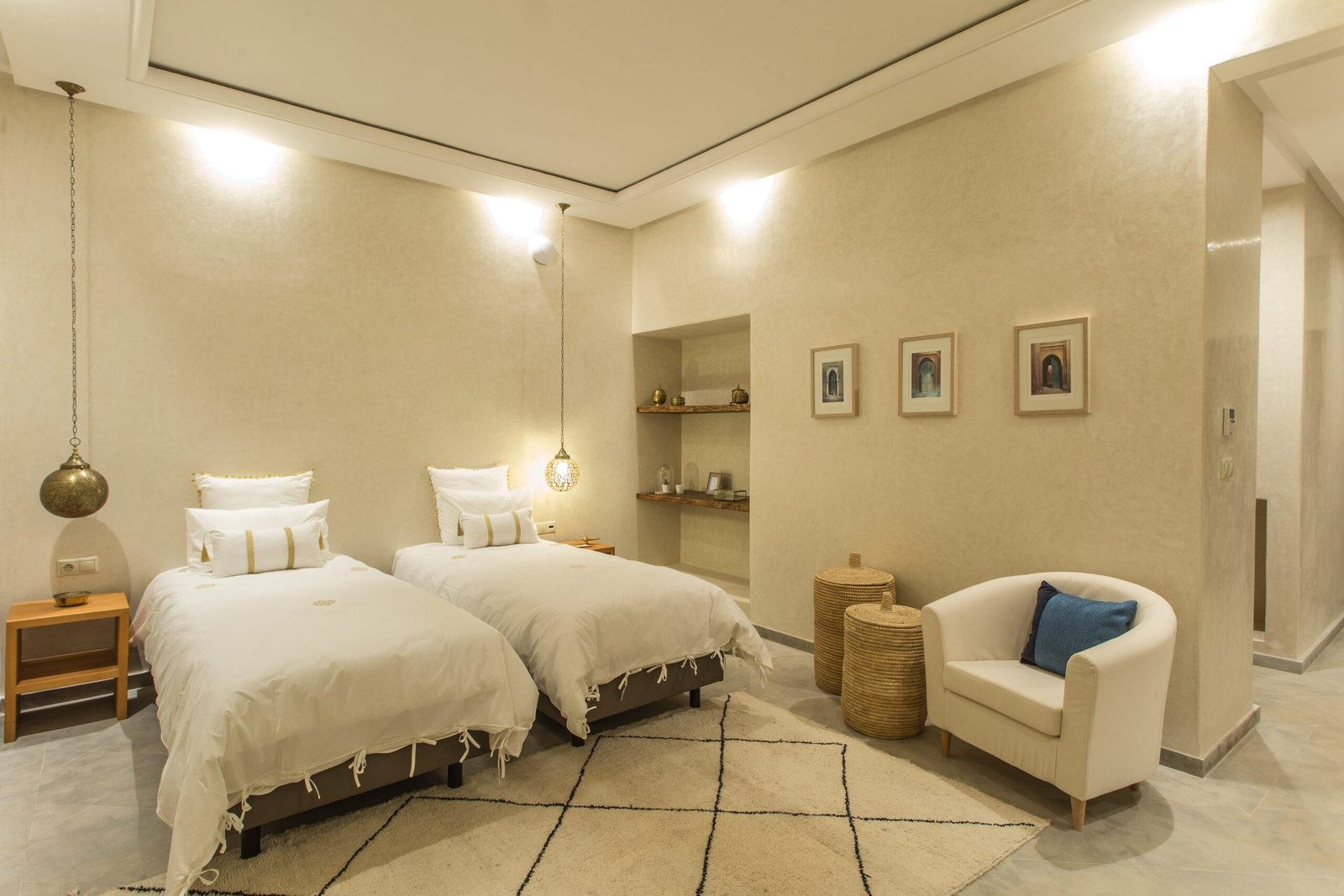Idéalement située à l’entrée de Marrakech, et à proximité du Golf Noria, cette jolie villa est un véritable havre de paix, offrant un mélange harmonieux de luxe, de confort et d’évasion marocaine. Avec ses 6 chambres spacieuses, chacune dotée d’une salle de bain privative, vous trouverez ici l’intimité et l’élégance dont vous rêviez. Lors de votre séjour, vous pourrez vous détendre et vous rafraîchir dans l’une des deux piscines, dont l’une est spécialement conçue pour les enfants, assurant à toute la famille un moment de plaisir et de relaxation. Un terrain de tennis et de pétanque est à la disposition des invités pour des activités sportives conviviales. Pour les amateurs de loisirs et de divertissements, la villa propose un espace dédié équipé de matériel de sport, une table de billard et un babyfoot.