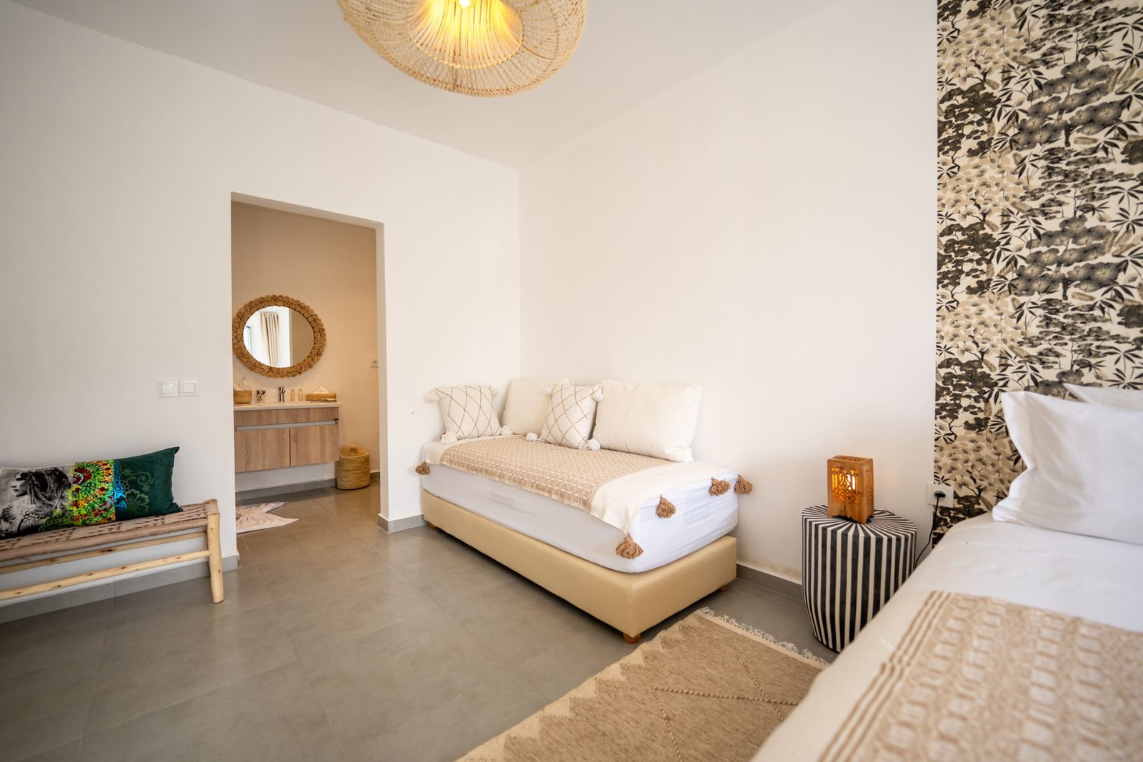 Dans ce cadre façonné par la fraîcheur de l’Atlantique, l’alliance des matériaux nobles et de la lumière naturelle crée une atmosphère à la fois élégante et chaleureuse, où le silence devient un luxe. Plus qu’un lieu, votre séjour sera une expérience, un refuge pour l’esprit et un hommage à l’authenticité de la région d’Essaouira.