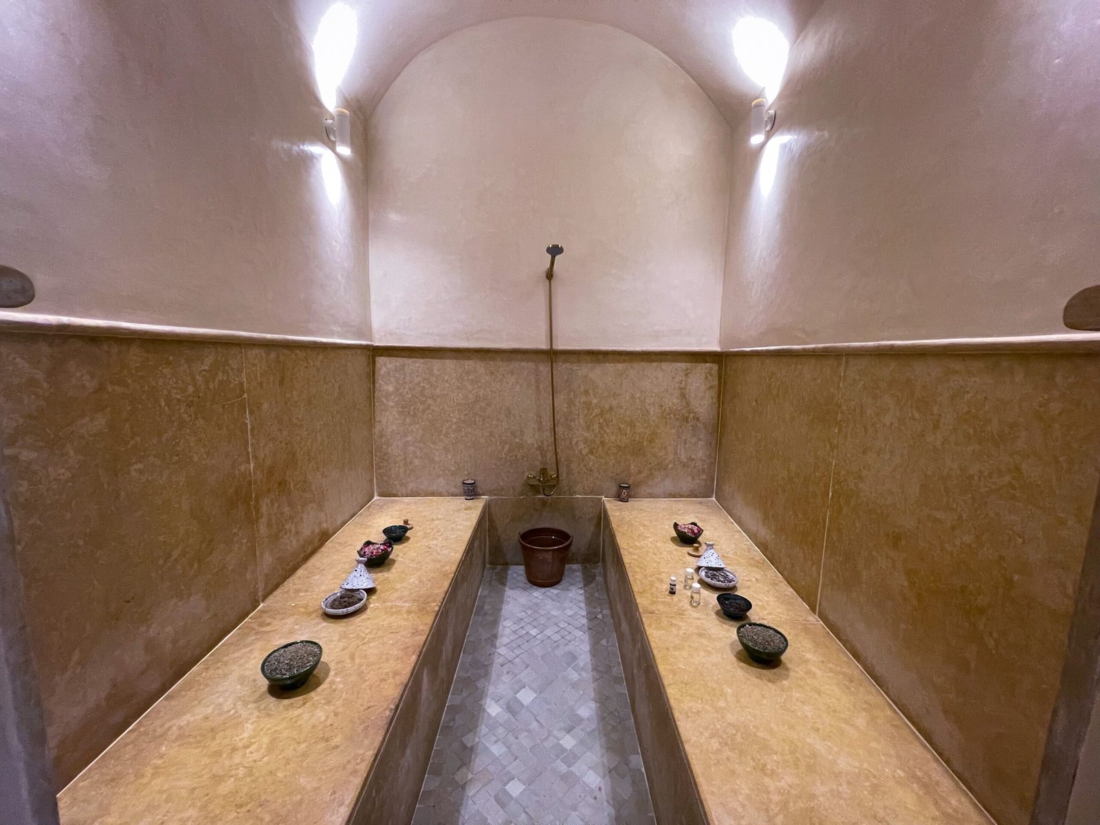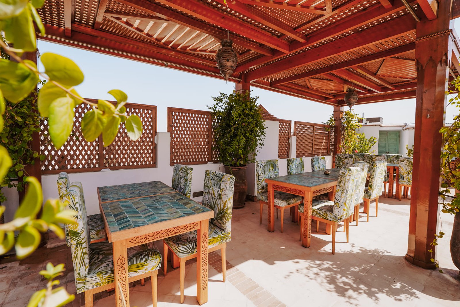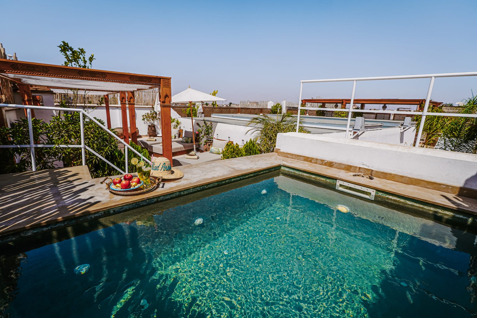 Le Riad dispose d’une grande terrasse ou vous pourriez profiter du soleil de Marrakech, ou du grand jacuzzi et vous prélasser par la suite sur les sun beds confortables mis à la disposition des invités.
