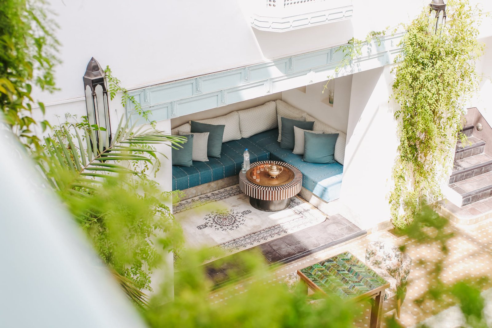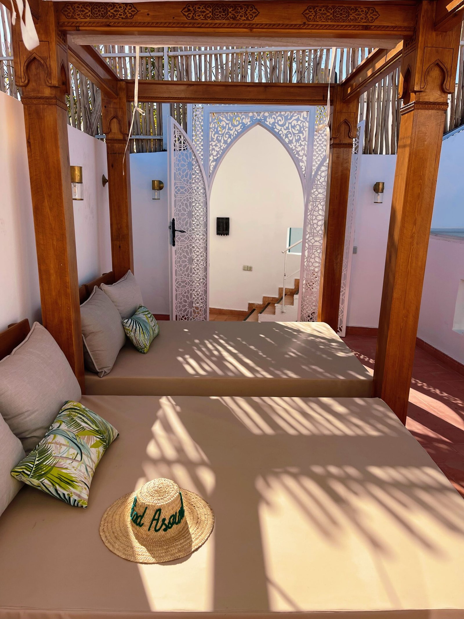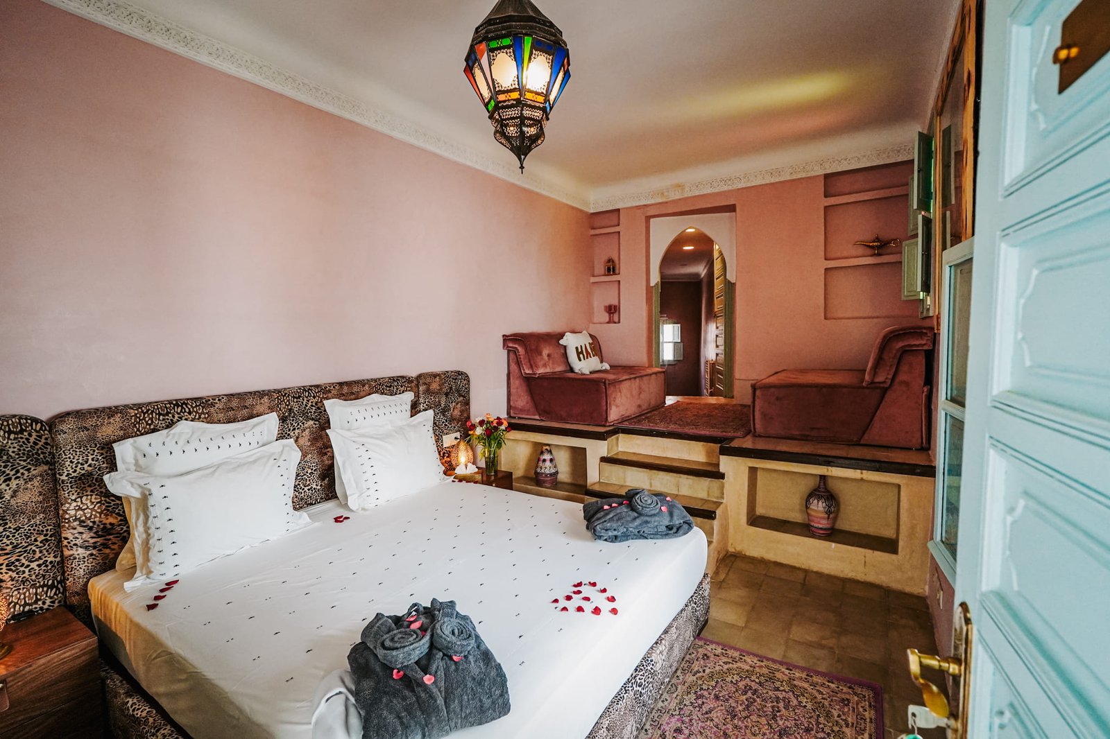 Le Riad dispose d’une grande terrasse ou vous pourriez profiter du soleil de Marrakech, ou du grand jacuzzi et vous prélasser par la suite sur les sun beds confortables mis à la disposition des invités.