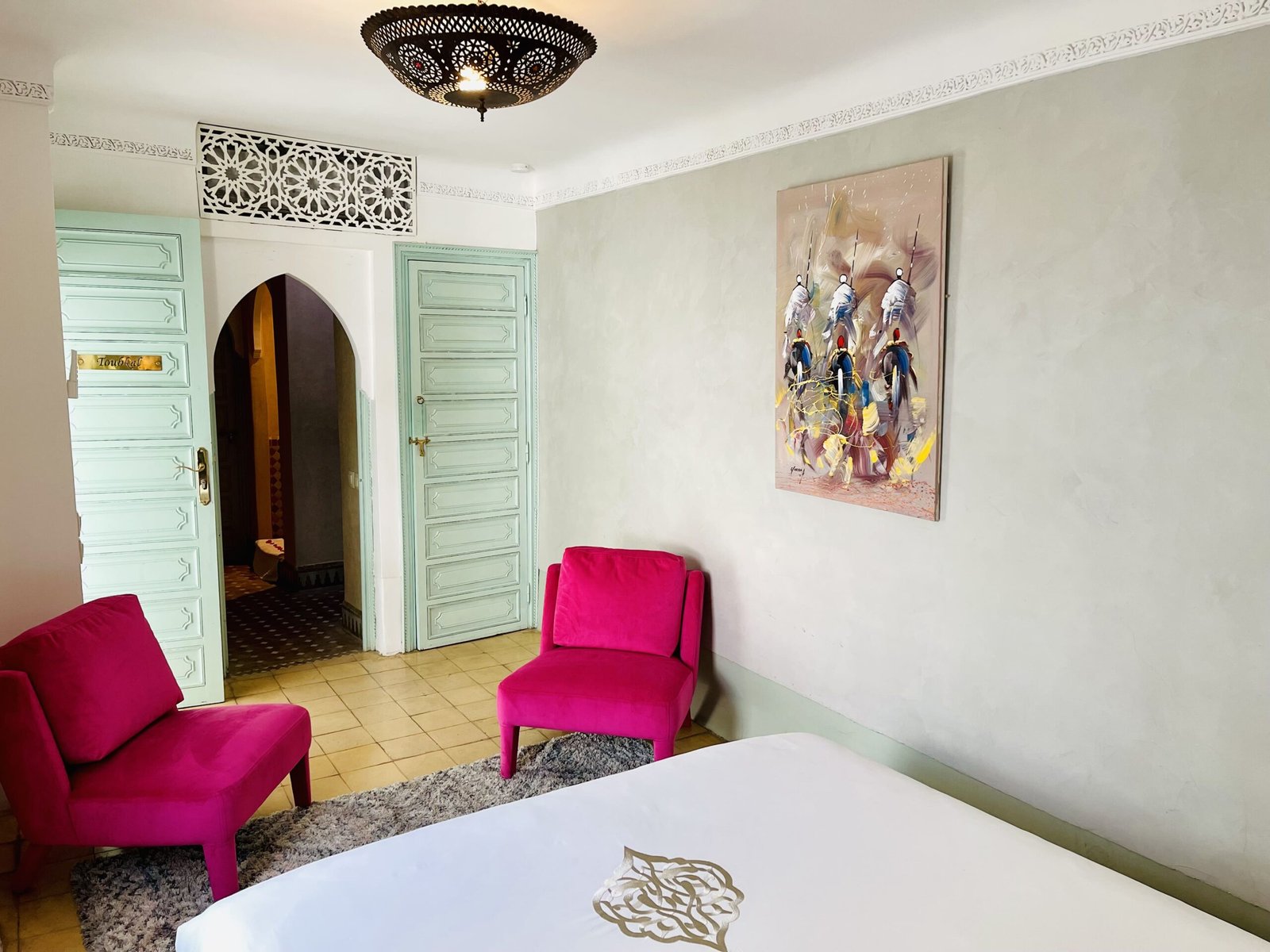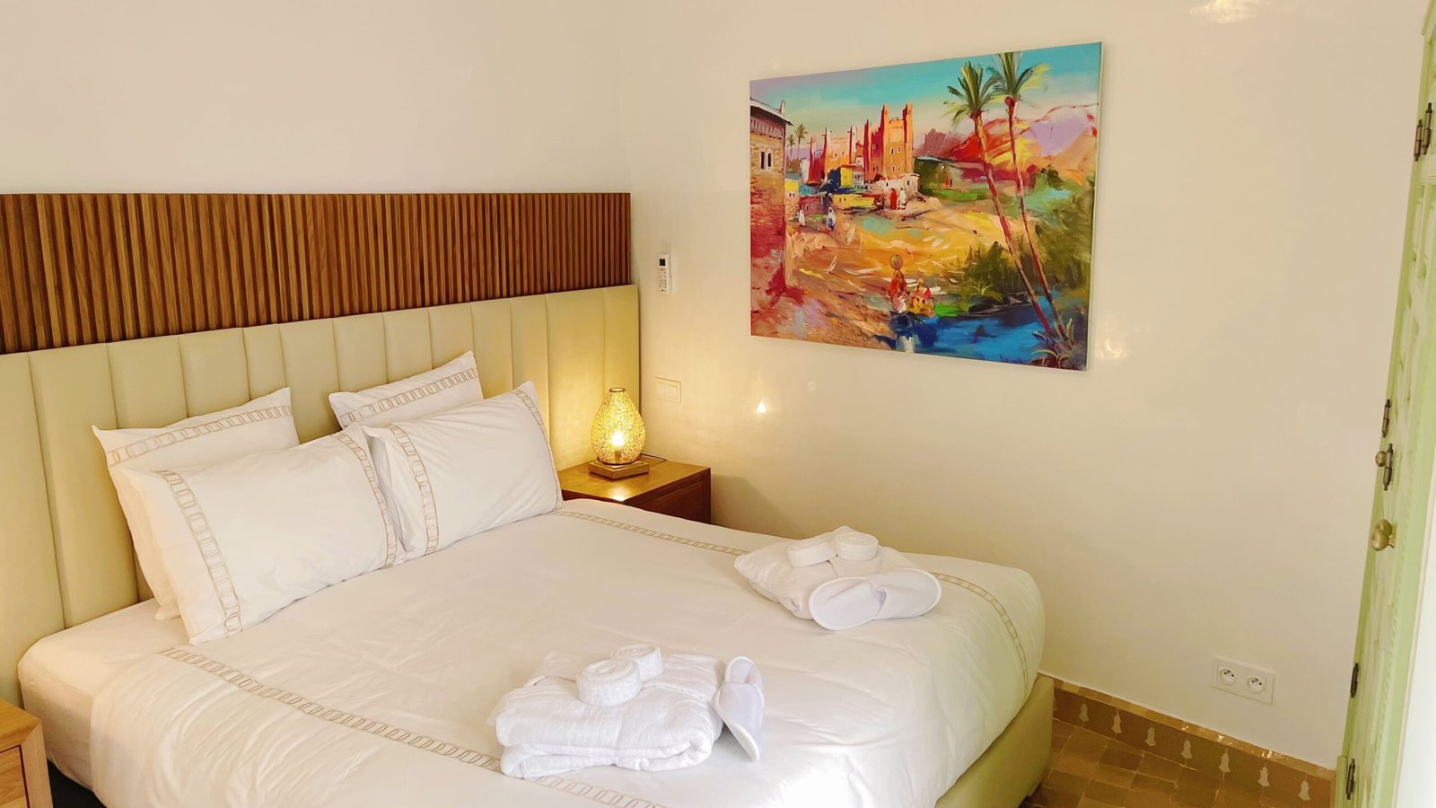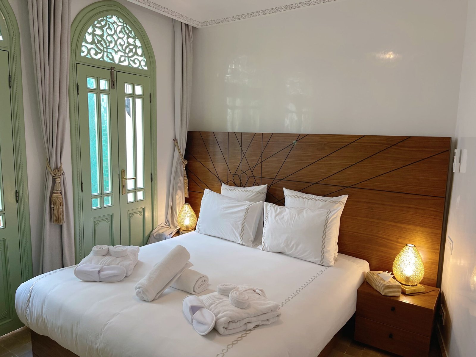 Un havre de paix où modernité et tradition marocaine se rencontrent pour créer une expérience inoubliable. 13 chambres élégamment décorées, alliant confort contemporain et charme marocain authentique. Vous pourrez vous détendre autour la piscine rafraîchissante, entourée de verdure, ou vous ressourcer dans le hammam traditionnel, suivi d’un bon massage relaxant.