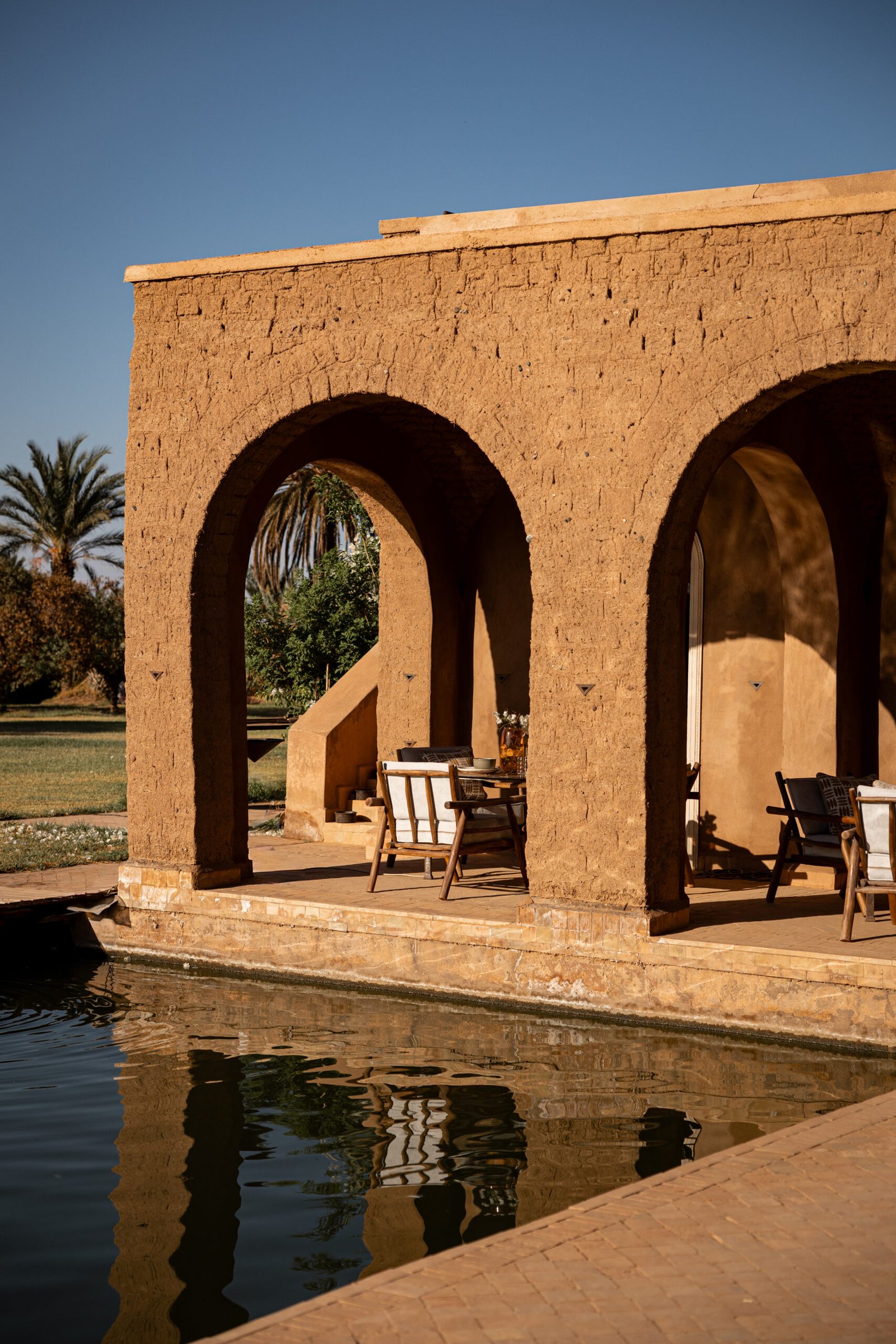 Véritable écrin de sérénité niché au cœur d’un domaine privé de plus de 7 hectares dans la Palmeraie de Marrakech, ce riad d’exception vous invite à une parenthèse hors du temps. Entouré de jardins luxuriants et paysagers, ce sanctuaire en terre crue incarne avec raffinement l’art de l’évasion et du bien-être.