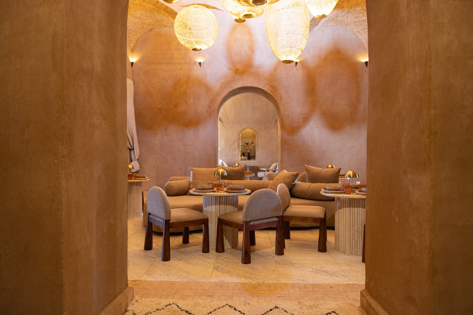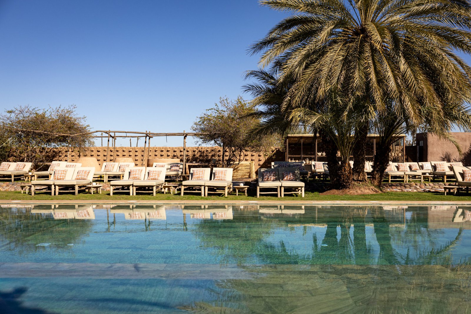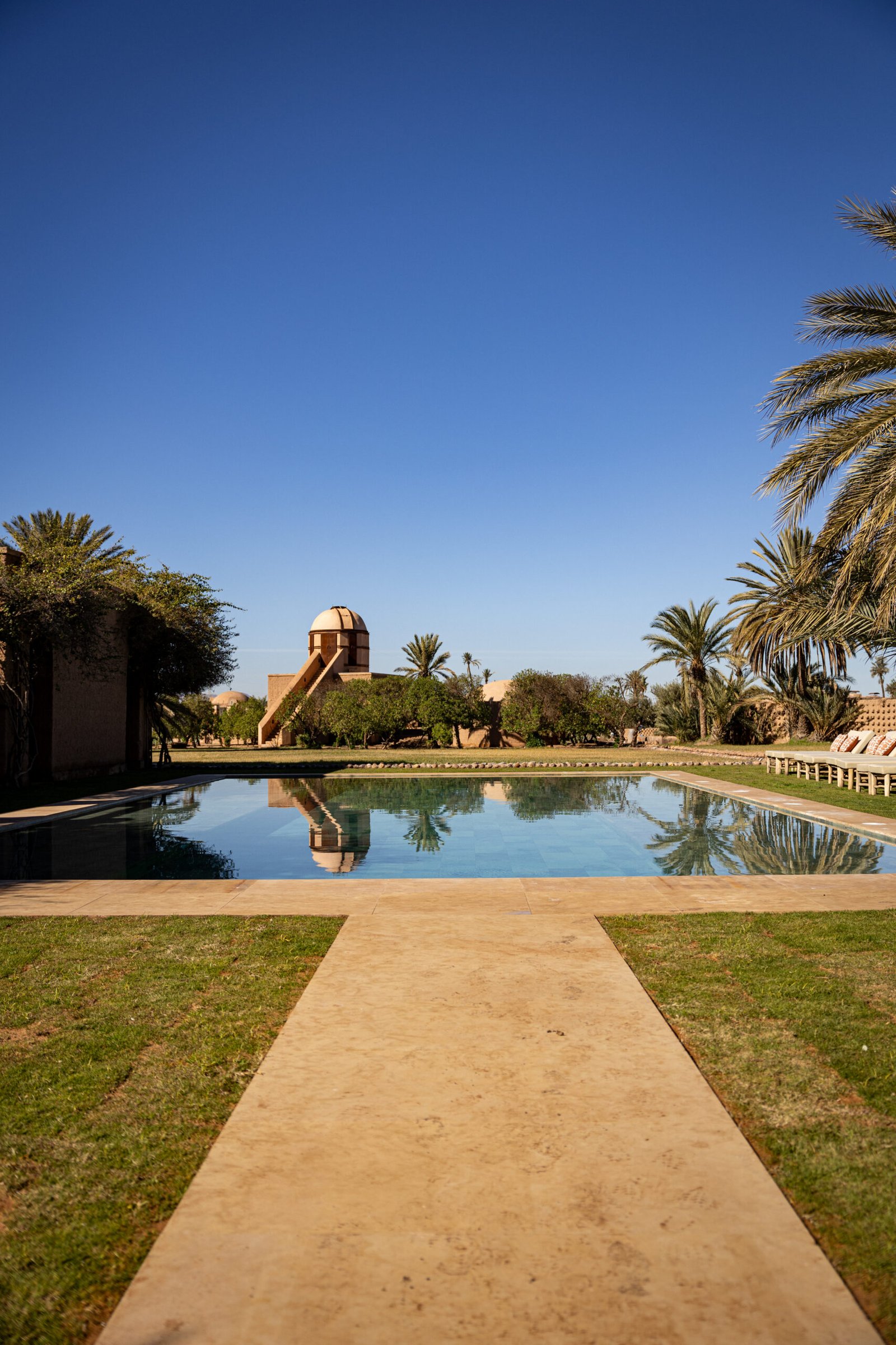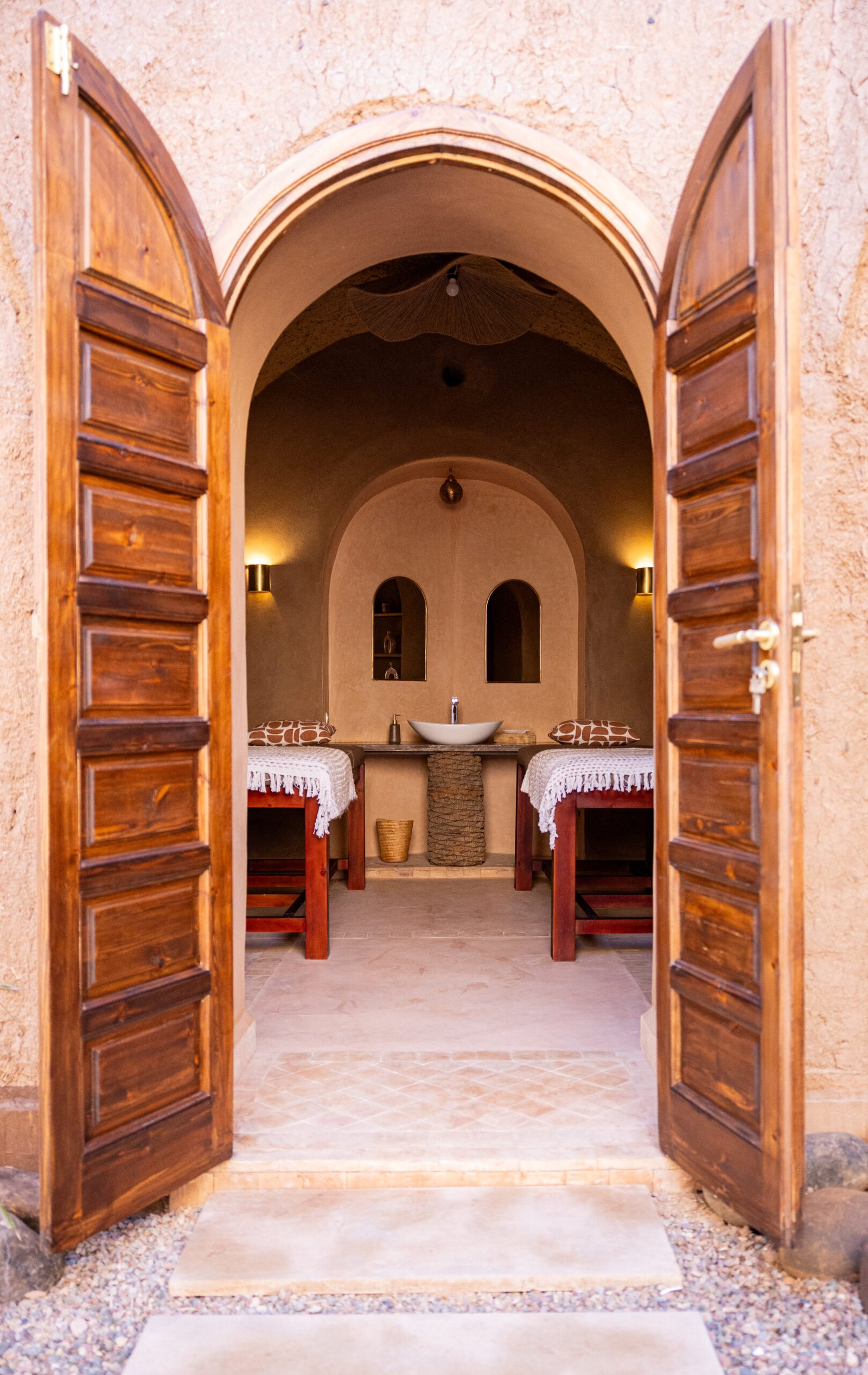 Les hôtes bénéficient d’un accès privilégié aux prestations du domaine : plusieurs espaces de restauration, lieux dédiés au yoga et à la réflexologie, hammam traditionnel, salles de massage et spa, pour une expérience exclusive au cœur de la Palmeraie.